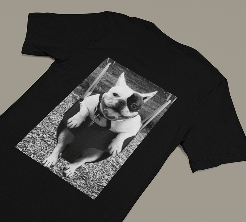 This shirt pays tribute to Tanya's beloved Sushi. A sturdy and faithful companion, Sushi brought a smile to all who crossed paths with her. She was photogenic too!