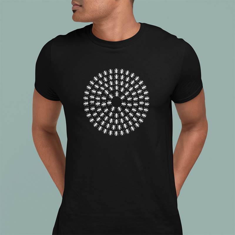 Ant mandala tshirt. Screen-printed frontal graphic design on 100% cotton shirt! Strong circular design. Eye-catching and unique. Great gift.