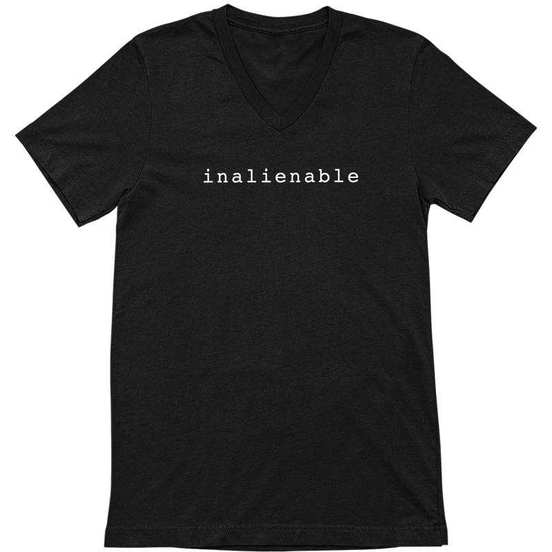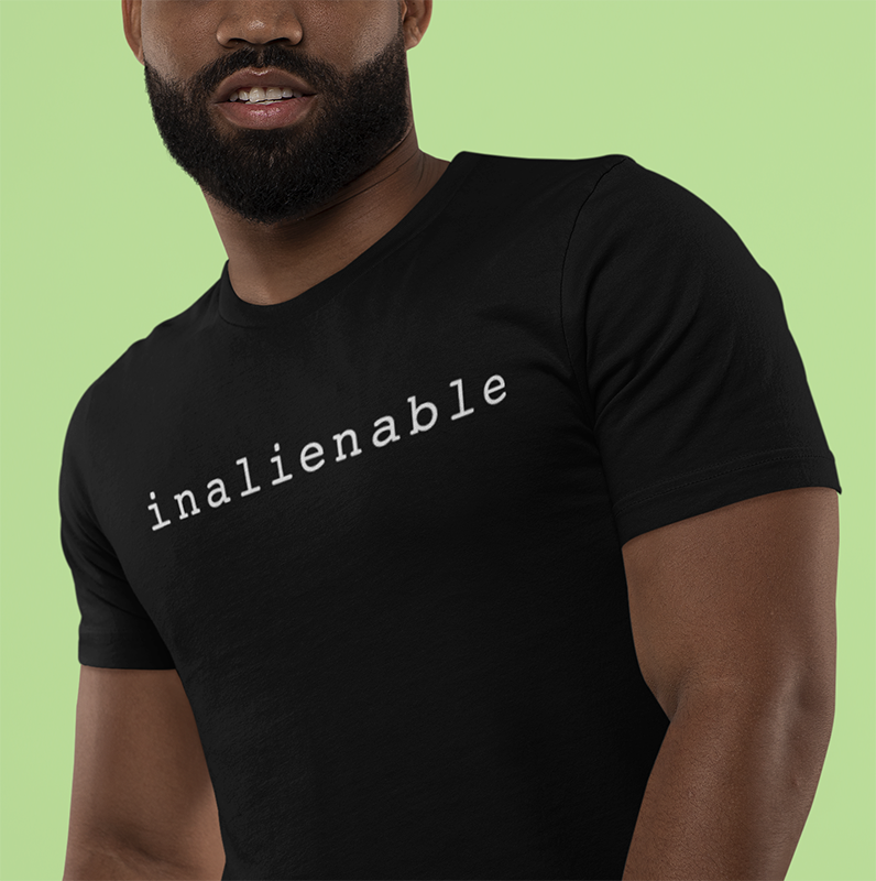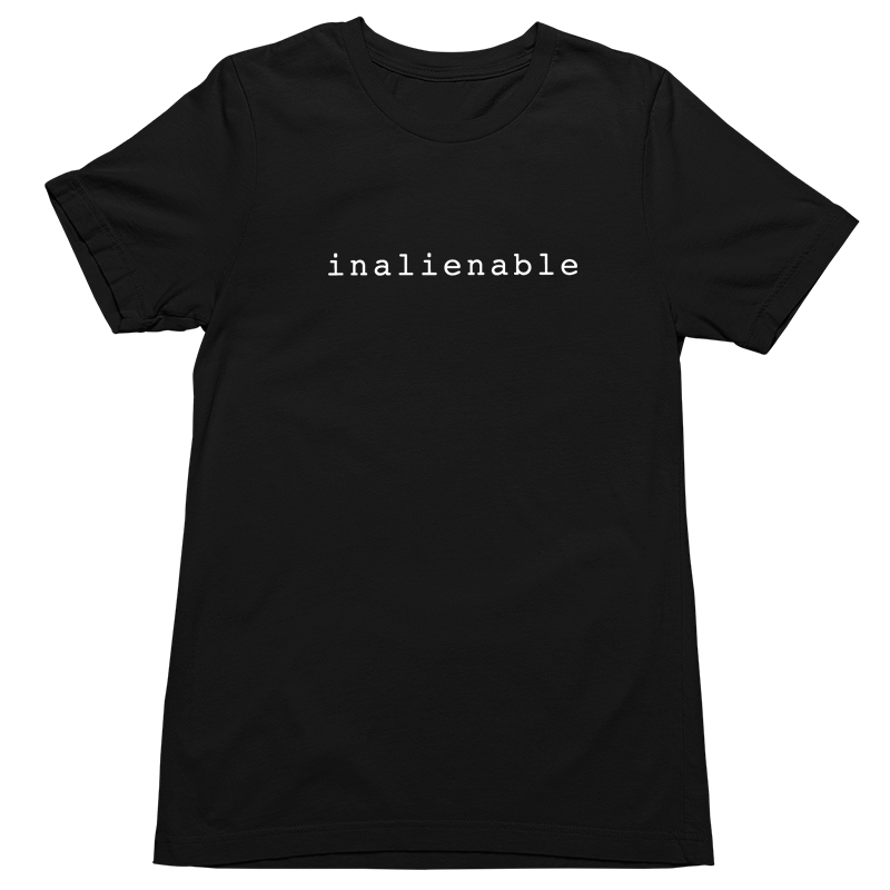 Positive text-based tshirt design, screen-printed graphic message supporting inclusion and human rights. Cool, confident, compassionate. Choose from white, asphalt, or black shirts; crew neck or V-neck. 100% airlume cotton fabric, comfortable, breathable.