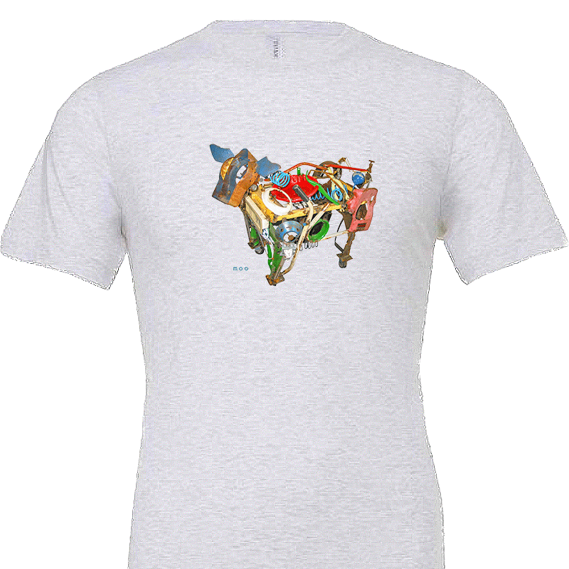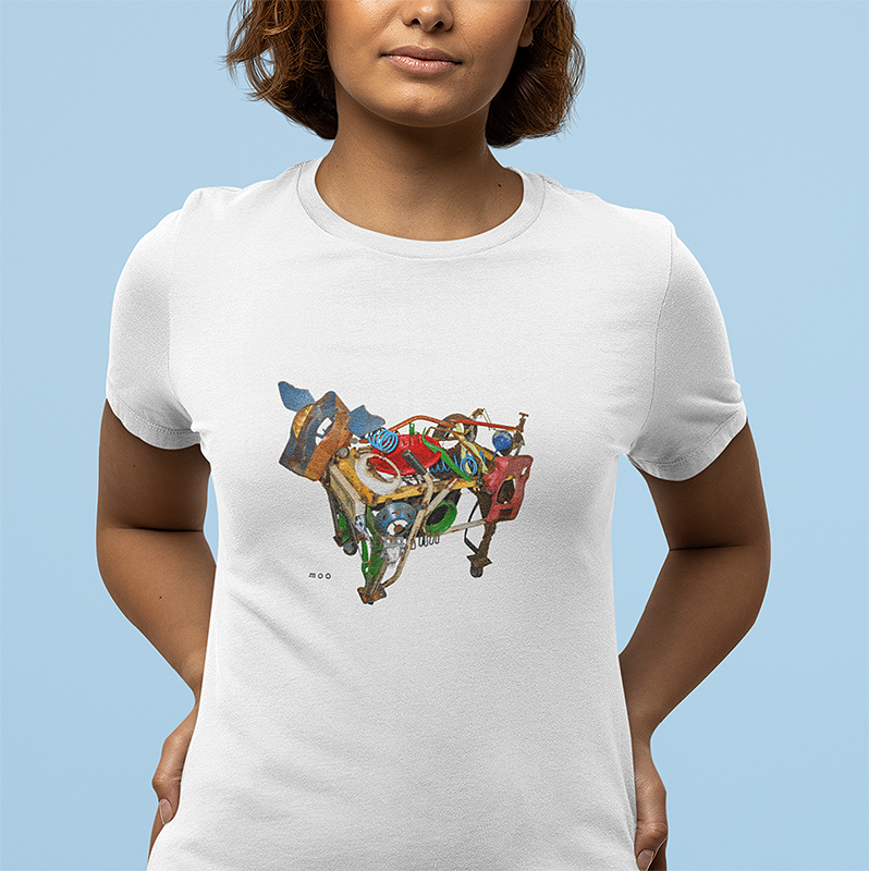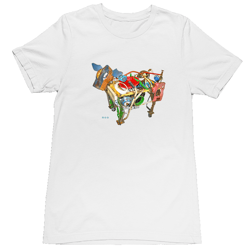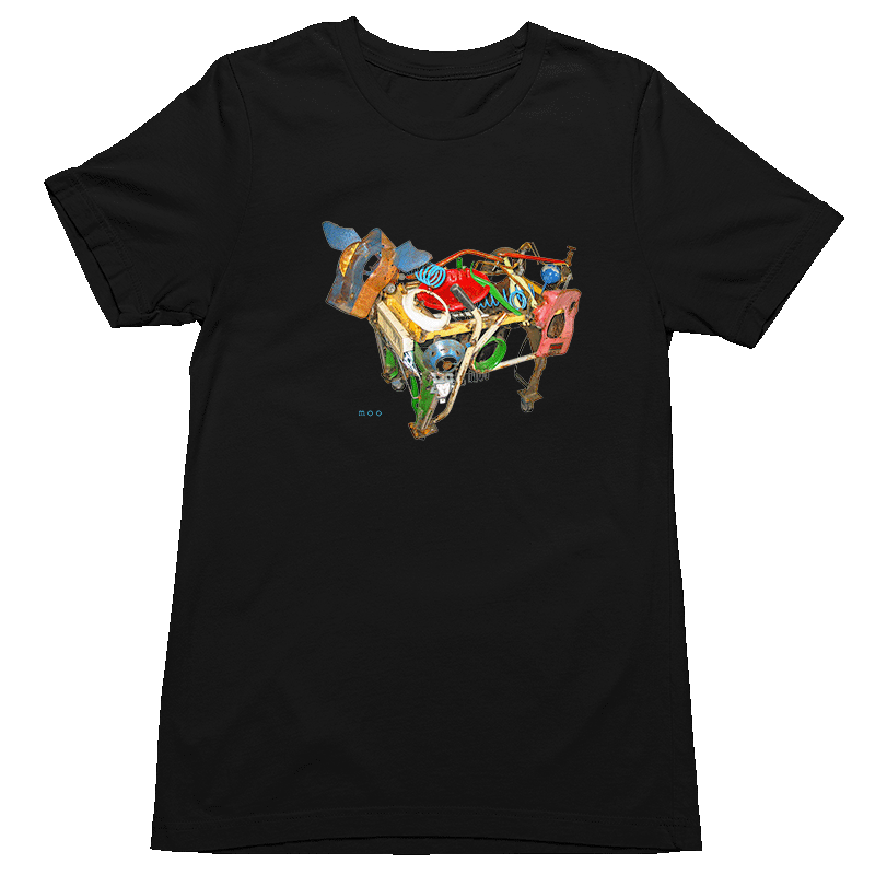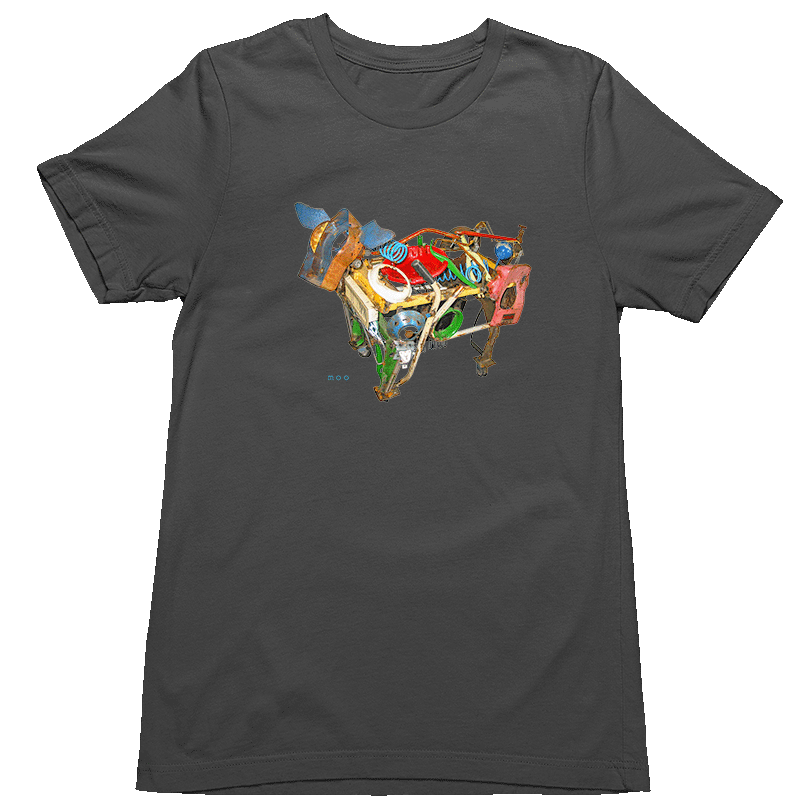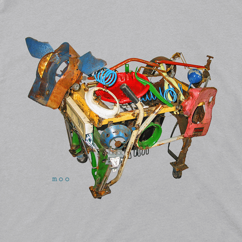 Moo. This image is based on a steel assemblage sculpture by Deborah Jang, titled "Cashless Cow." A unique design, udderly whimsical.