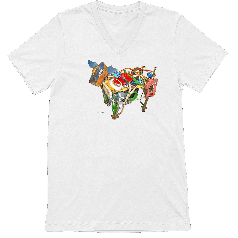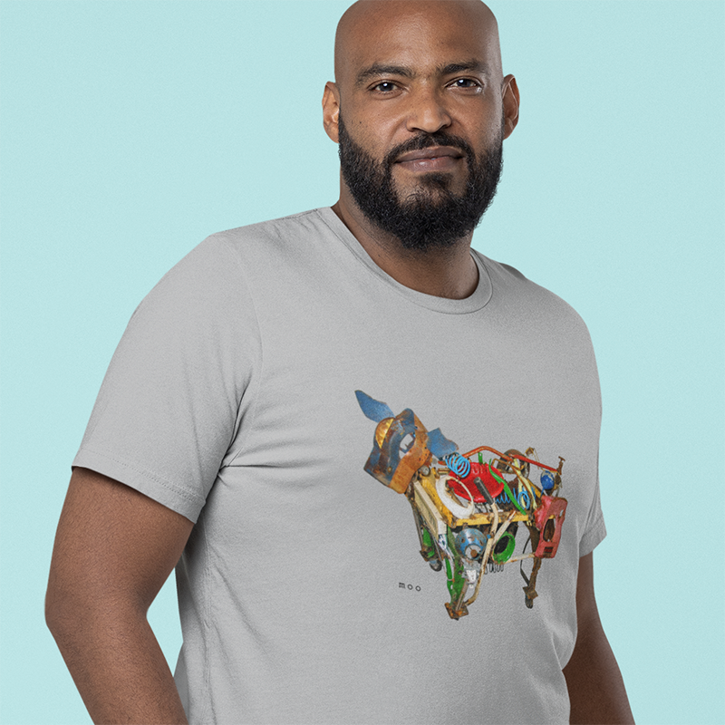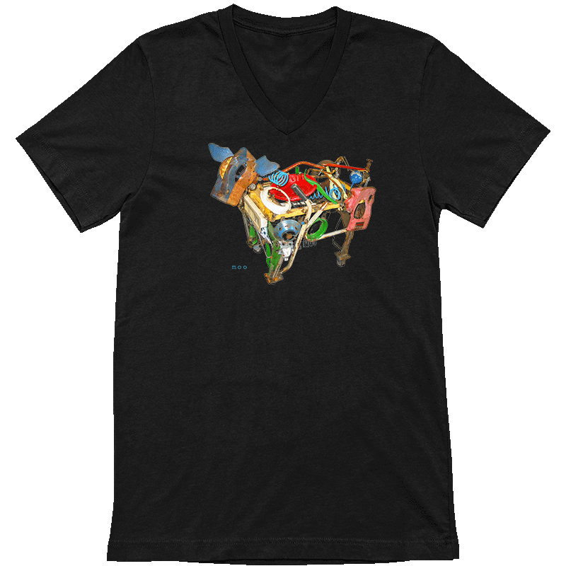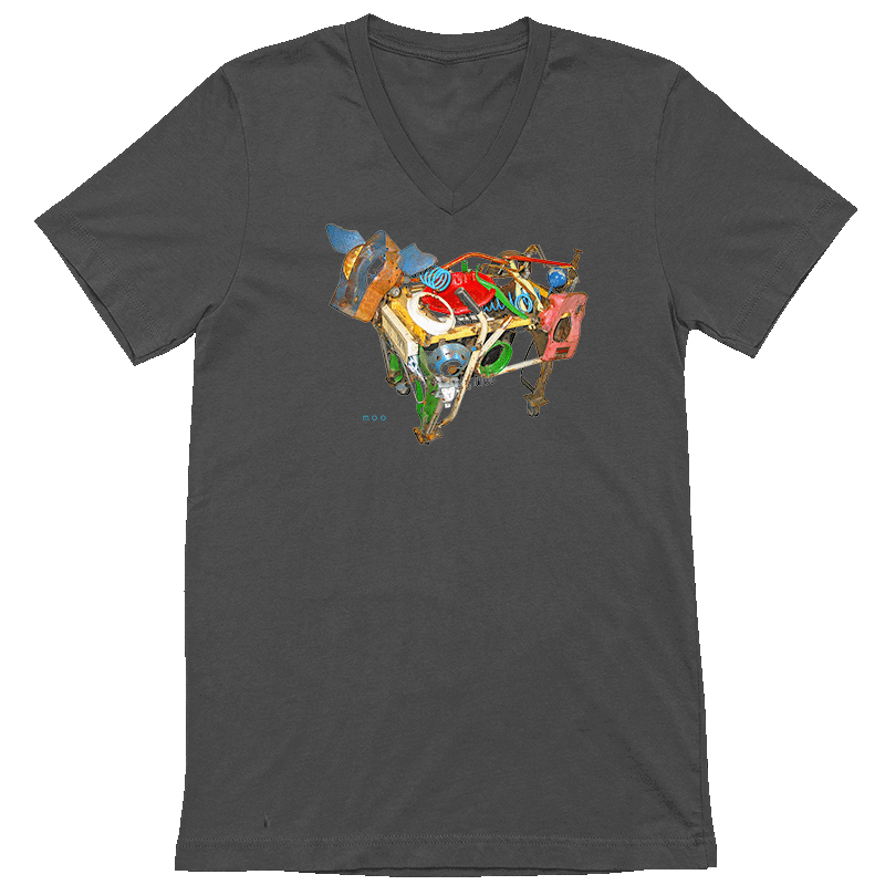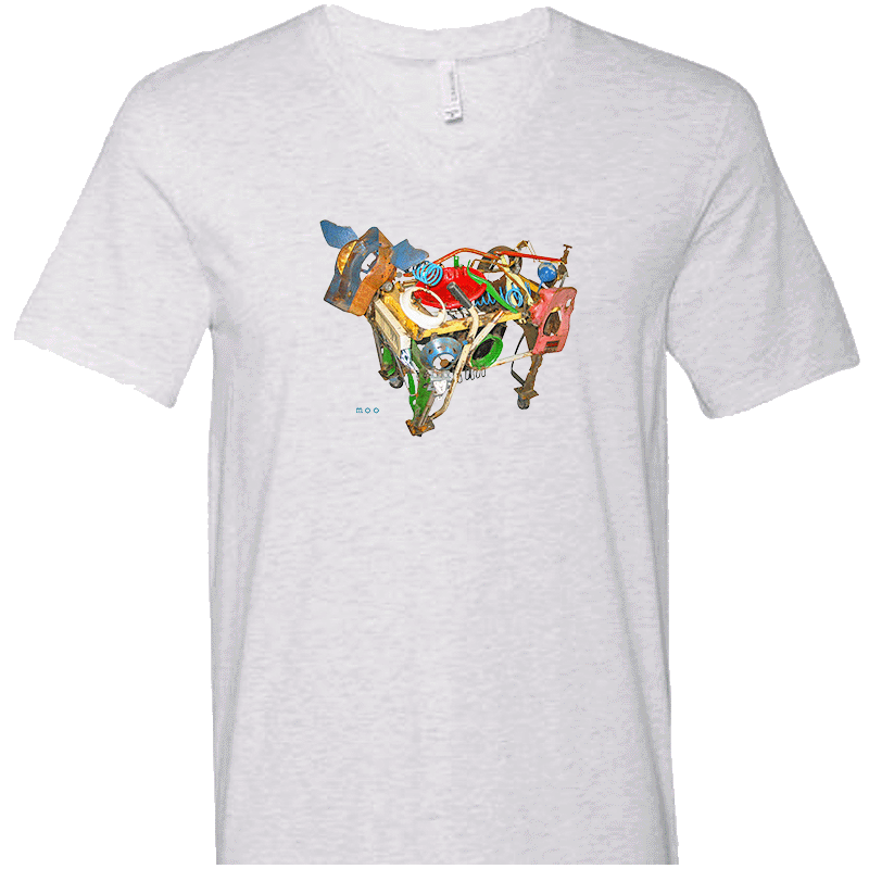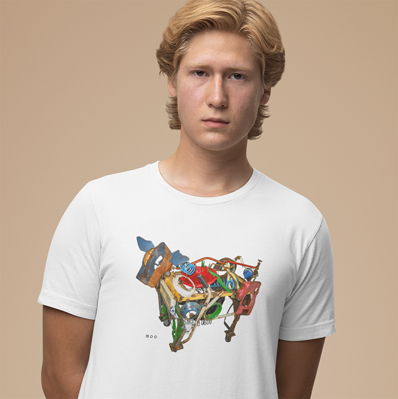 Moo. This image is based on a steel assemblage sculpture by Deborah Jang, titled "Cashless Cow." A unique design, udderly whimsical.