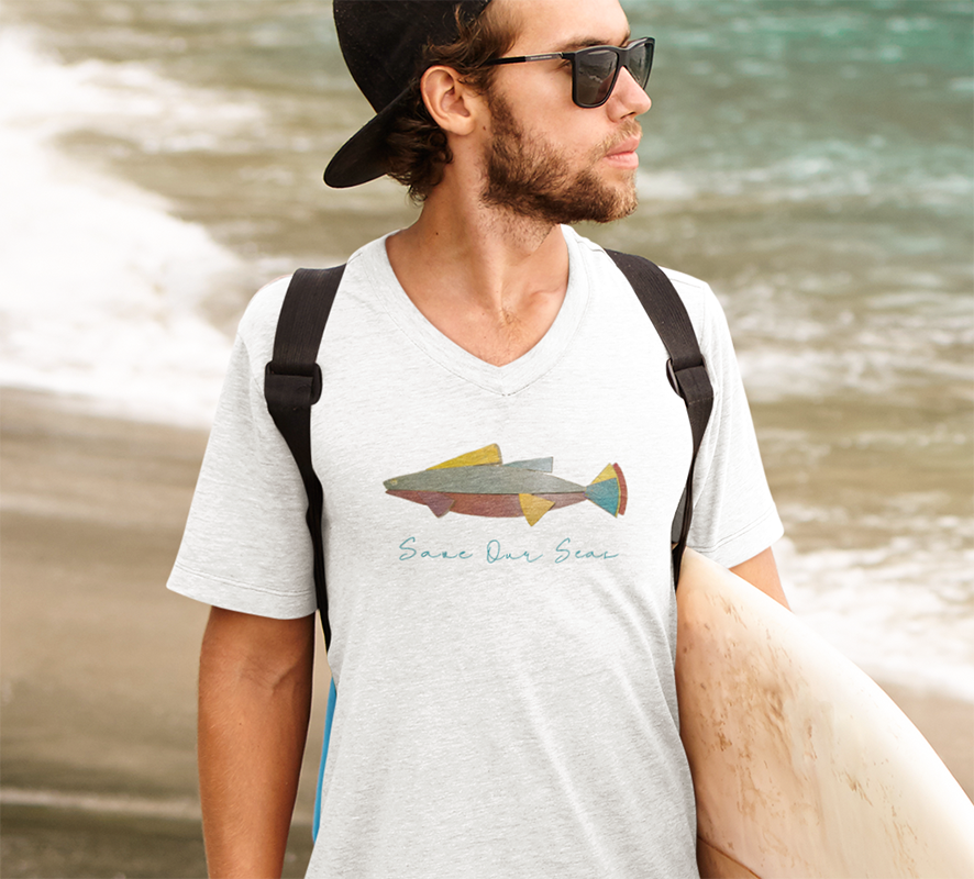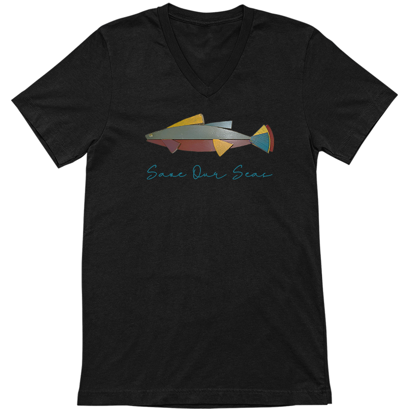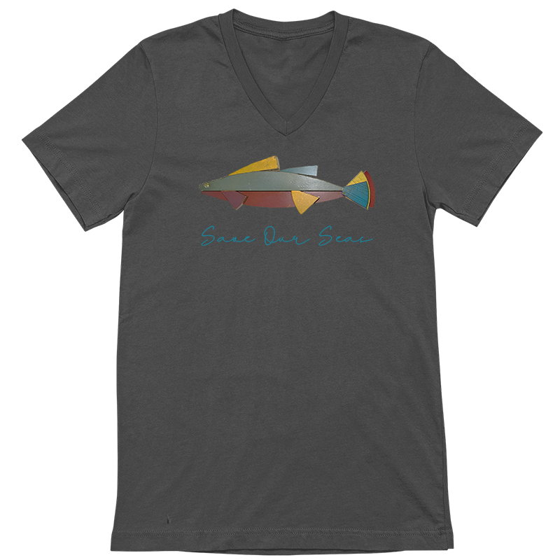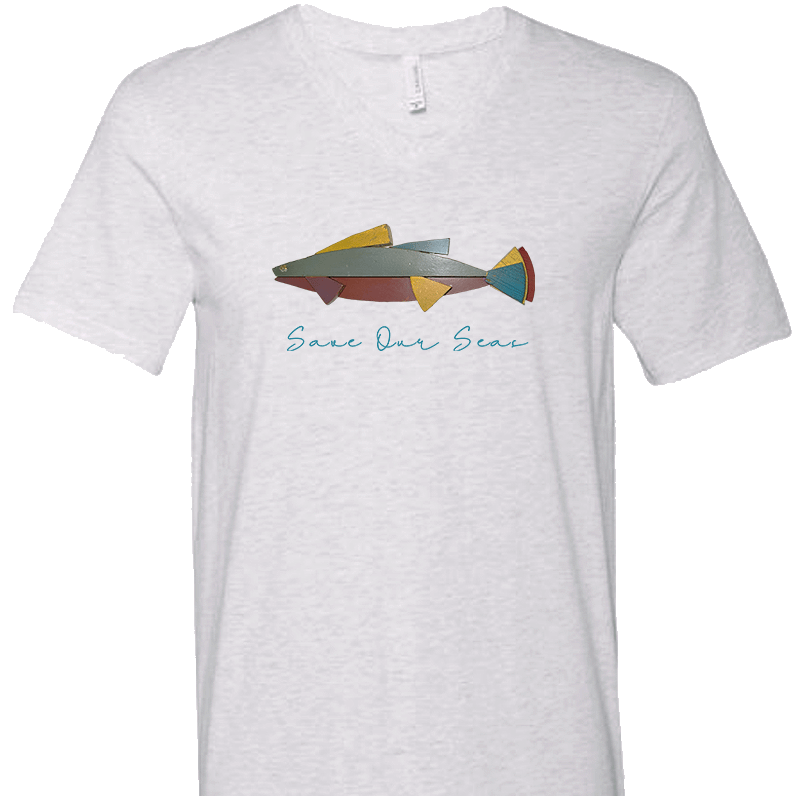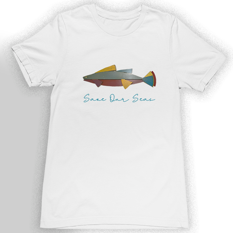 Save Our Seas. Wear this environmentally conscious message, featuring an assemblage fish sculpture image (titled "Turn It Around") by Deborah Jang.